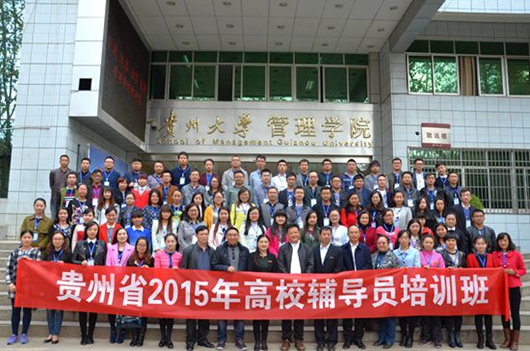 贵大新闻网讯(记者团 谭戊梁 杨昌梅 摄影 李友名)11月23日上午,2015年贵州省高校辅导员培训班开班典礼在管理学院三楼报告厅举行。省教育厅党组成员、省委教育工委副书记赵廷昌,校党委副书记杨未出席开班典礼,来自全省53所高校的81名辅导员参加本期培训。