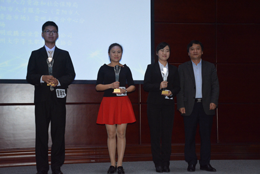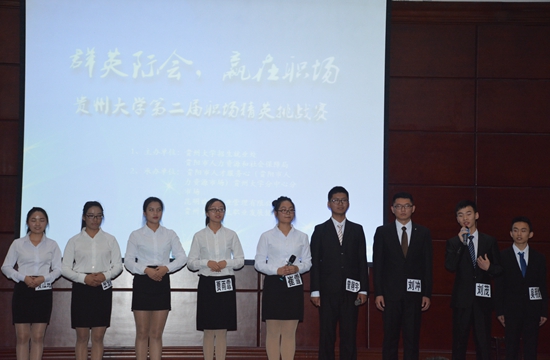 贵大新闻网讯(记者团 付鼎 实习记者 吕彦南 报道|摄影 聂安珊)11月24日,由我校招生就业处与贵阳市人力资源和社会保障局联合主办的“贵州大学第二届职场精英挑战赛”决赛在我校一号行政楼学术报告厅举行。我校副校长向淑文,贵州省普通高等学校毕业生就业工作办公室主任张华,贵州财经大学、贵州医科大学、贵阳学院、贵州交通职院毕业生就业工作部门负责人,贵阳市人才交流中心就业服务部部长周玉涛出席此次活动。联想、海尔、康师傅、贵州都市报、中铁十八局集团有限公司、苏宁电器的企业代表担任此次决赛评委。