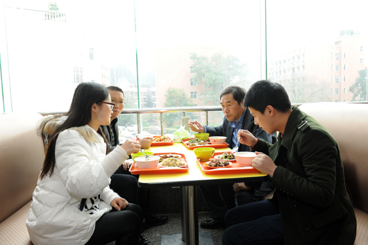 调研结束后,陈坚书记来到北区中山园二楼自助餐厅,与同学一起就餐。