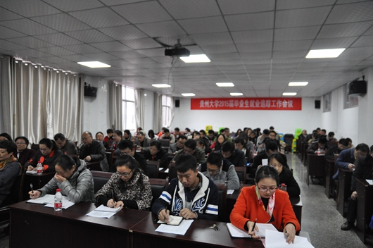 贵大新闻网讯(招就处 杨敏)12月1日,我校2015届毕业生就业创业工作会议在招生就业处三楼会议室召开,校党委副书记杨未、副校长向淑文、李军旗出席会议,我校毕业生就业创业工作委员会全体成员参加会议。杨未副书记主持会议。