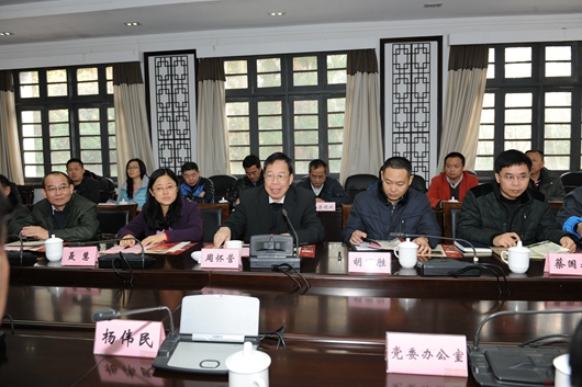杨伟民对周怀营书记一行人的到来表示欢迎。校党委组织部和发展规划处,分别向周怀营一行介绍了我校在党建工作以及学校十三五规划的制定、综合体制改革工作情况和经验。周怀营介绍了桂林电子科技大学近年来的发展情况,并分享了在办学自主权下放到学院的成功经验。双方还对学校的办学、改建、后勤等领域深入交流了经验。