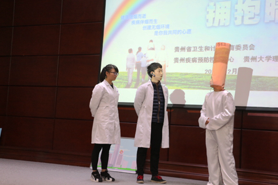 贵州省疾控中心健康教育所副所长何琳主任医师、理学院党委副书记陈朝东、副院长江阳、办公室主任何飞以及疾控中心的相关老师和理学院部分学生参加了此次活动。