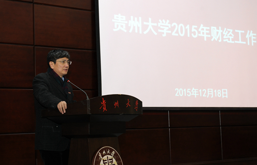 谢田凯总会计师作《贵州大学财经工作报告》,报告从目前财经工作的新常态、违反规定受到处理的案例,我校接受专项审计的情况和目前正在开展的专项工作等方面介绍了我校2015年的财经工作。报告从理清学术资产、规范招投标、加强内控制度建设、加强预算收支管理规范绩效工资分配和改进服务质量等方面提出了我校2016年的财经工作思路。