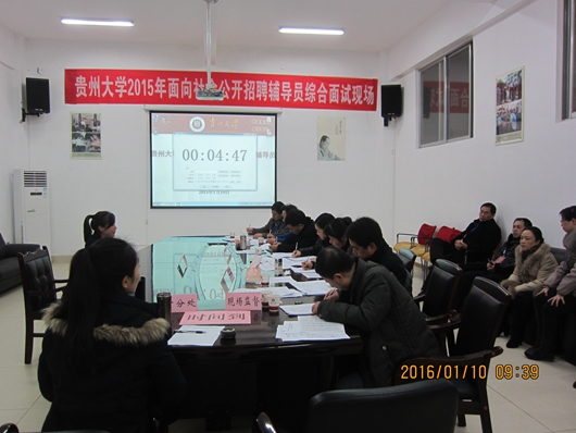 贵大新闻网讯(人事处)2016年1月8日——10日,贵州大学2015年面向社会公开招聘面试工作顺利完成。