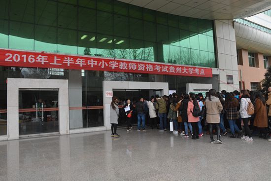 贵大新闻网讯(记者团 付鼎 姚瑶 杨秀秀 摄影报道)3月12日上午,2016年上半年全国中小学教师资格考试笔试在我校举行。来自全省的7846名考生在我校考点参加考试。本次考试考场分布在北校区博学楼、西校区东楼及西楼三栋教学楼内进行。