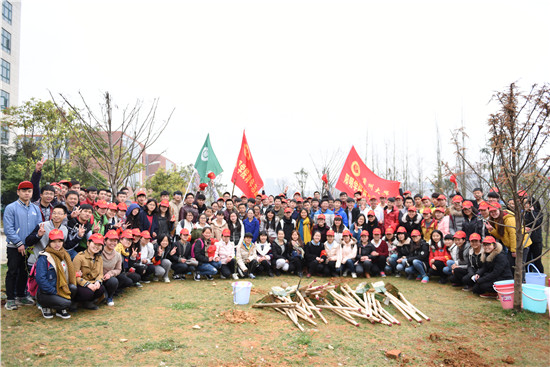 贵大新闻网讯(记者团 付鼎 报道|摄影 雷德盼)红帽子、绿铁锹、青树苗,120名大一学生用自己的方式度过植树节。