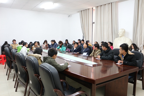 贵大新闻网讯( 药学院新闻中心 胡清秀 报道|摄影 杨薇 )为了进一步促进学生干部之间的交流,使新学期学生工作进行得更加规范有序,3月11日15:30,药学院学生干部大会在西校区崇义楼418召开。参加本次会议的有药学院党委书记李开学、党委副书记张豫芳、学生科负责人戴隆满,院团委、学生会、青协等干部及13级、14级班长、团支书共40余人。