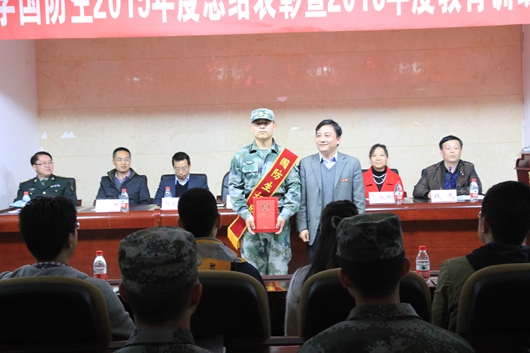 驻贵州大学选培办主任邓世斌作2015年度国防生培养工作总结。郭林桦宣读《关于表彰2015年度国防生先进个人的决定》文件,表彰了“训练标兵”赵英皓、彭子昂;“优秀国防生骨干”连晔涛,高翺;“学习尖子”:周海月、杨杰;“优秀国防生”谢宜志、汪先富;“国防生标兵”李乐乐等优秀国防生,并鼓励他们再接再厉,再创佳绩,也希望更多的国防生积极投身国防生事业。