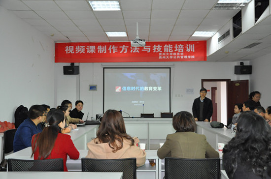培训开始,谢承已介绍了参加此次培训的人员组成。他说:“目前我校贵客联盟已经基本准备就绪,此平台建立之后,将会有十余门课程放到上面,以便进行多种教学。而且我们会逐步将我校其他课程的视频放到该门户上,进而打造一个为全省乃至全国信息共享的平台。”许鹿教授表示,此次的在线课程制作将会对公管学院乃至贵大的教学改革有重大影响。