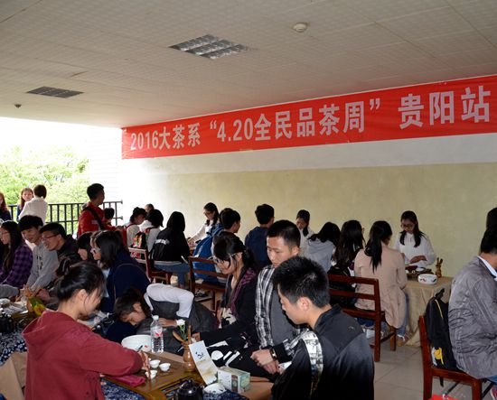贵大新闻网讯(记者团 张圆 报道|摄影 李友名)为弘扬我国传统茶文化,4月17日下午,我校茶道社于南校区致知楼开展主题为“互联网+茶也可以时尚化”的2016大茶系“4·20全民品茶周”茶艺展示及万众品茶活动。