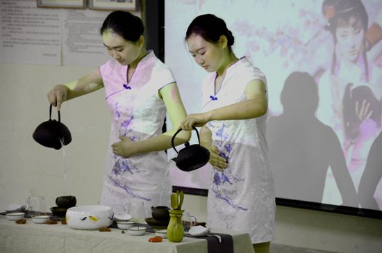 此次活动穿插三个茶艺表演节目和一场品茶交流活动。其中,茶业表演为《家书》、《枉凝眉》与《茉莉飘香》,表演者将茶道故事与茶艺展示相结合,将烫杯、赏茶、冲水等一系列沏茶动作呈现于观众眼前。