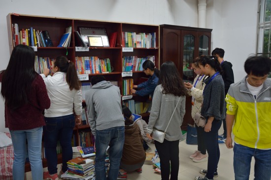 上午十点,负责人张寘一向青协成员说明相关的礼貌问题和注意事项后,成员进行分组到宿舍收集书籍。冶金143班的王飞说:“有需要的时候我自己也会来借书,不用去买,很方便。”