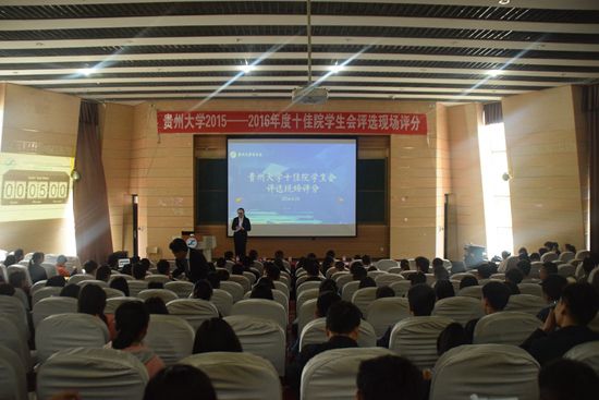 贵大新闻网讯(校团委 郭禹呈 郝正银 报道|摄影 王振宇)为激励各学院学生会更好服务青年学生,4月23日下午2点,在东校区圆形报告厅我校学生会主办的2015-2016年度十佳院学生会现场评分活动举行。