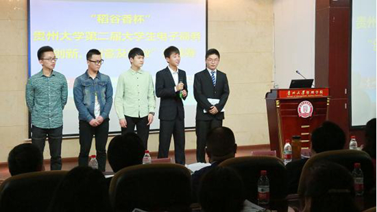 贵大新闻网讯 (管理学院 摄影报道) 4月28日下午,在我校北校区管理学院三楼报告厅举行了“稻谷香杯”贵州大学第二届大学生电子商务“创新、创意及创业”挑战赛。本次大赛由教务处主办,管理学院承办,贵州稻谷香建设控股集团赞助。我校党委副书记杨未、副校长向淑文 ,管理学院院长李烨等人出席了本次大赛。我校发展规划处处长林岚涛同贵州稻谷香建设控股集团董事长袁征福等相关专家组成了本次评委团。