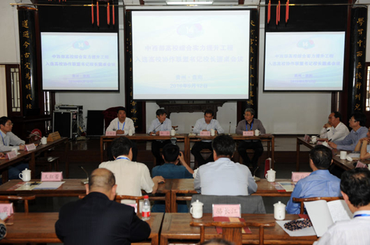 联盟秘书长、贵州大学校长郑强报告了协作联盟的工作情况。2013年7月18日,“中西部高校综合实力工程入选高校协作联盟”成立以来,发布了《中西部高校综合实力提升工程入选高校协作联盟章程》,每年定期召开书记校长圆桌会议、工作经验交流会议,建立健全“协作联盟”协作机制,促进特色学科合作建设,推进协同创新和经验交流,加强应用研究和科研成果转化,推动制度建设、学科建设、队伍建设、科学研究,社会服务、国际交流与合作等的交流合作。