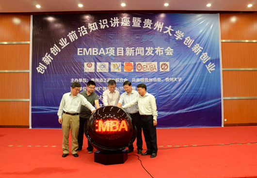 贵大新闻网讯(记者团 张圆 报道|摄影 李友名)5月15日下午,我校创新创业前沿知识讲座暨创新创业EMBA项目新闻发布会在贵州省政协报告厅举行。省政协副主席孙国强,共青团贵州省委副书记闵江涛,省委统战部副部长、省工商联党组书记肖向阳,省工商联副主席潘晓燕,省工商联宣教部部长汤漫,我校常务副校长王红蕾,浙江大学教授张应航,管理学院院相关负责人出席,省工商联、共青团贵州省委、校EMBA相关人员及企业家成长计划成员参加。