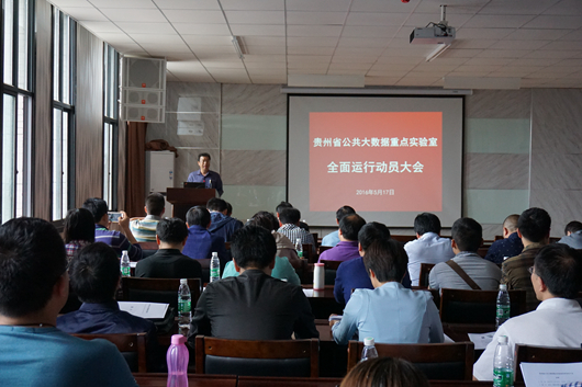 贵大新闻网讯 (贵州省公共大数据重点实验室)5月17日下午,贵州省公共大数据重点实验室全面启动动员大会在贵州大学西校区崇理楼607报告厅举行,标志着贵州省公共大数据重点实验室已全面启动。本次大会的任务是调动全省大数据相关科研和技术人员积极投入重点实验室建设和科学研究。我校副校长李军旗、科研院及相关学院负责人、贵州省大数据产业发展应用研究院及其实验室负责人出席会议,校内研究人员和校外兼职研究人员参加会议。
