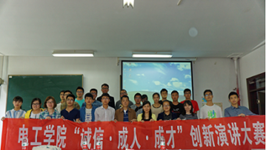 贵大新闻网讯(电气工程学院 冉媛娜 报道|摄影 刘文峰)5月17日,电气工程学院在我校新校区西楼106教室举办了“诚信•成人•成才”主题演讲比赛。电气工程学院党委副书记张静矣、学生科科长苟敏、团委负责人陈倩、接力计划辅导员陈双燕出席了本次演讲比赛并担任评委。