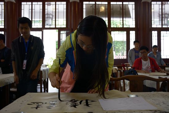 选手们笔精墨妙,清末樱宁的《汝将老去》、唐代杜甫的《忆江南》、唐代李白的《黄鹤楼送孟浩然之广陵》等诗句收放有度,苍劲有力。书写内容也不乏“厚德载物,自强不息”等人生格言。“我觉得这是个很好的平台来检验自己在书法方面有没有进步,而且我觉得书法是一门艺术,可以让自己静下心来思考。”阳明学院罗显谊如是说。