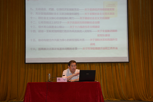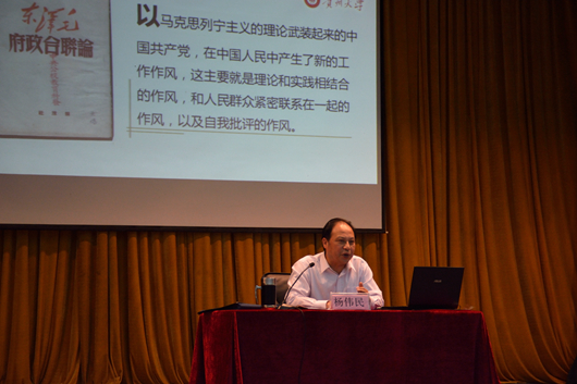 5月22日上午,校党委副书记杨未作《中国共产党的光辉历程》的报告。杨未指出,贵州要守好生态与发展的底线,走一条不同于东部,有别于西部其他省份的道路,同步建成小康社会,希望大家用自己的视角去读中国的革命史,去了解中国共产党的光辉历程,以实际行动创造人生精彩。