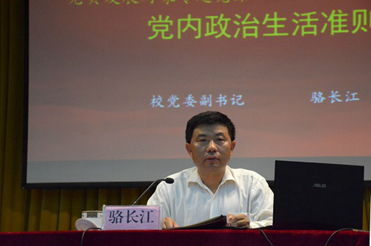 5月21日下午,校党委副书记骆长江作《党内政治生活准则》的报告。骆长江强调,坚持党性,就是要为为广大人民群众谋利益。党员要学习马克思主义、毛泽东思想、邓小平理论、三个代表重要思想和科学发展观,要学习党的方针、政策,要努力提高为人民服务的本领。希望党员发展对象能好好学习,早日加入中国共产党,成为一名合格党员,成为国家栋梁之才。