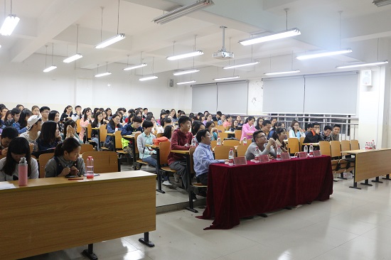 贵大新闻网讯 (药学院 胡清秀 报道|摄影 杨薇) 为了引导2014级学生树立正确的职业规划意识,科学规划自己的职业生涯,5月24日晚,药学院于南校区致知楼举行2014级职业生涯规划大赛。该院团委书记、学生科负责人戴隆满等学院老师和2014级共120余名学生参加此次活动。