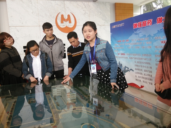 贵大新闻网讯(药学院 胡清秀 报道|摄影 褚红路 尹欣) 受全球经济下行压力不断加大、高校毕业生人数不断增加的影响,今年就业形势较为严峻。为充分提高我校2016届毕业生就业率,5月27日,我校招生就业处市场科科长周学功和药学院团委书记、学生科负责人戴隆满分别代表招生就业处和药学院,带领药学院就业工作交流团赴威门药业股份有限公司开展就业对接交流。交流团共50余人,由硕士研究生和本科生组成。