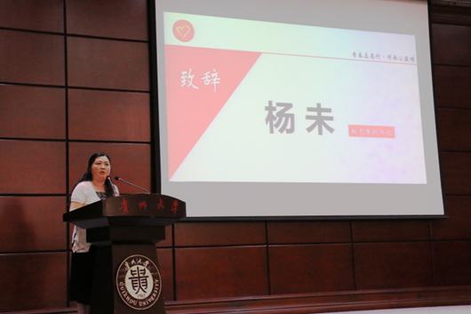 大赛分两个阶段举行,第一阶段为大赛开幕式,校团委副书记龙汶(主持工作)宣读《关于贵州大学青年志愿者协会正式更名的通知》。