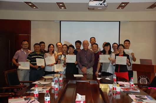 Alan Glodowski教授与访学教师进行了深入的交流,对教学法方面的问题进行了探讨。Alan Glodowski教授就他所研究的翻转课堂与大家进行了分享,他提到,美国各行业最注重员工具有两种能力,一种是与人沟通交流的能力,一种是小组合作的能力,翻转课堂可以使这两种能力得到更好的开发与提升,他向大家展示IIT 学生在翻转课堂上课的视频,让大家更加直观生动的了解了翻转课堂的教学流程。在座谈过程中,Alan Glodowski教授表达生动幽默,态度和蔼亲切,与老师们积极互动,现场气氛热烈。
