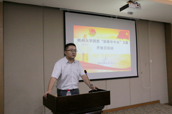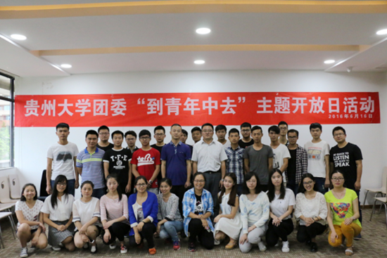 贵大新闻网讯 ( 校团委 王振宇 摄影报道 ) 为落实党的群团工作会议精神,加强团干部与青年学生的联系,按照团省委的统一部署,校团委于6月16日下午开展“贵州大学团委‘到青年中去’主题开放日活动。校团委副书记(主持工作)龙汶、校团委各科室负责老师及来自30个基层学院团员青年代表共50人参加了主题开放日活动。校团委副书记左柏州主持相关活动。