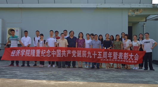 贵大新闻网讯( 经济学院占凤婷|文 李佳宁|图 )6月24日下午,经济学院隆重庆祝中国共产党诞辰九十五周年暨表彰大会在逸夫楼518会议室顺利举行。学院党政领导、全体党员、以及入党积极分子代表参加了此次表彰大会,会议由党委副书记杨海同志主持。