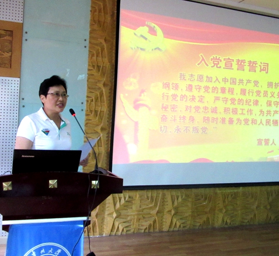 会议共五项议程。首先,院党委书记丁晓慧带领新党员进行入党宣誓,庄严的入党誓词增强了新党员的使命感与责任感的同时也为庆祝建党95周年营造了浓厚的气氛。