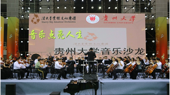 贵大新闻网讯 高雅音乐点亮人生,满天星光照耀贵大。7月9日,满天星业余交响乐团走进贵州大学音乐沙龙。3000余名师生一起聆听经典名曲,感悟高雅音乐的魅力。