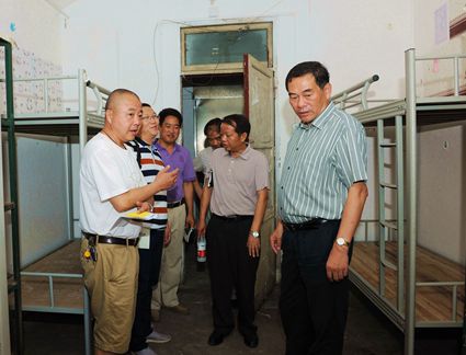 在南校区学生宿舍,陈坚一行详细查看了学生宿舍的情况,并就房屋建筑安全情况、学生入住人数、宿舍的维修和改造、环境美化等进行了详细了解。