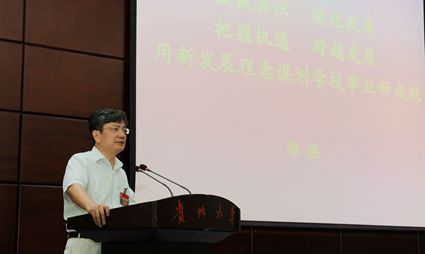 校党委书记陈坚作总结讲话。陈坚强调,全校师生要统一思想,凝聚正能量;要齐心协力,勤奋工作;要坚持群众路线,扎实开展工作。他指出,贵州大学正处于发展和改革的关键时期。特别是今年作为“十三五”开局之年,机遇与挑战并存,全校师生员工要团结起来,为建设高水平有特色领军型大学积极作出贡献。