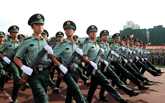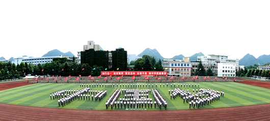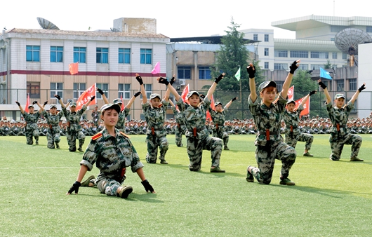 国歌嘹亮,旌旗飘扬,标兵就位。校长郑强检阅全体受训学员。来自各学院的汇演方阵依次从主席台前经过,女子匕首操方阵、男子擒敌方阵、棍术方阵,展现了当代大学生朝气蓬勃、敢于拼搏的精神面貌。由400名女生组成的“富强”“复兴”“幸福”“和谐”“中国梦”拼字方阵士气昂然,誓将个人理想及抱负与中国梦相结合,谱一曲完美的人生乐章。