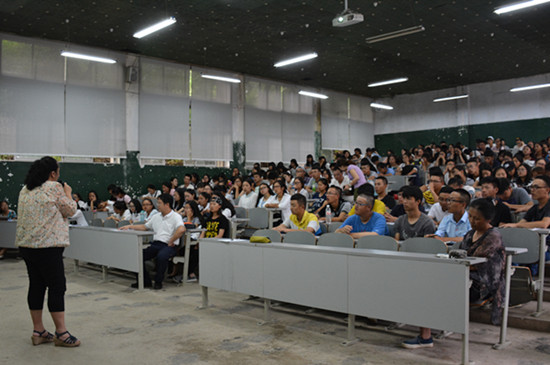 贵大新闻网讯 (公共管理学院新闻中心 摄影报道) 7月18日中午,公共管理学院2015级学生见面会暨年级大会于北校区法学楼111D教室举行,与会人员有学院党委书记李波,院长黄其松,党委副书记刘明锋,副院长靳永翥,各系主任,教学科各老师,学生科老师崔永霞及2015届公管学院全体300余名同学。会议由学院党委副书记刘明锋书记主持。
