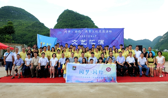 贵大新闻网讯(记者团 付鼎 报道|摄影 周佳颖 江中川)7月21日下午,“同梦·同行”贵州大学香港大学教育文化交流走进贞丰岩鱼小学文艺汇演在岩鱼村公社广场举行。兴义师范学院副校长龙渊,贞丰县委常委陈磊、蒙立胜,我校党委宣传部部长杨楠,资助管理中心主任潘欣,国际交流与合作处副处长谢明英等相关部门负责人参加文艺汇演。