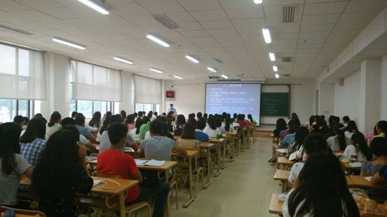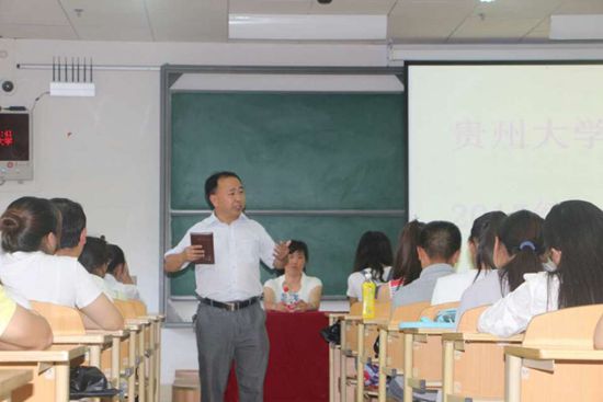 贵大新闻网讯 (药学院 清景 报道|摄影 胡丽) 为使2015级同学顺利转入专业学院进行的有序学习和生活,更使其对接下来的大学生活有更清晰的发展目标和奋斗路径, 7月18日上午和20日下午,药学院2015级学生系列入院教育大会在新校区北楼531D和214D教室举行。药学院党委书记李开学、院长欧阳贵平、副院长李焱出席了大会,各系主任、科室负责人及2015级全体同学参加。会议由院党委副书记张豫芳主持。