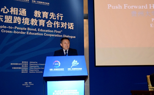 贵大新闻网讯(田鑫 记者团 姚玉莹 杨昌梅 报道|摄影 舒恒 )8月2日,由中国教育国际交流协会主办,贵州大学承办的 “民心相通 教育先行¬——中国东盟跨境教育合作对话”论坛在贵阳国际生态会议中心3楼举行。我校常务副校长王红蕾、副校长金道超出席论坛活动。