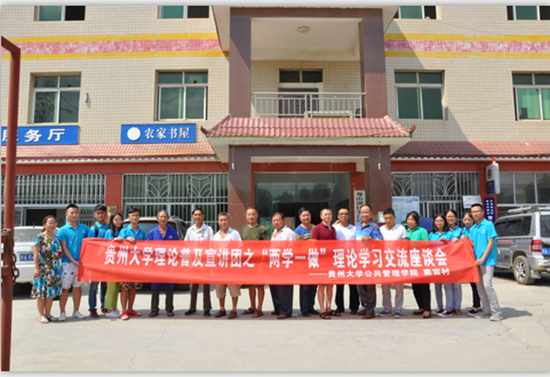 贵大新闻网讯 (公共管理学院 何静 杨鑫馨 报道|摄影 左罗) 8月1日下午,我校理论普及宣讲团与窦官村干部在窦官村委会议室围绕如何更好进行乡村建设,让百姓过上好日子以及农村党员如何做好党员带头作用等方面进行了“两学一做”理论学习交流座谈会。窦官村支部副书记周世伦、现支部委员郭余发、原支部副书记刘德荣、刘本春等十余名窦官村党员和我校公共管理学院崔永霞老师及大学生宣讲团成员参加了本次理论学习交流座谈会。座谈会由窦官村支部副书记周世伦与我校公共管理学院老师崔永霞共同主持。