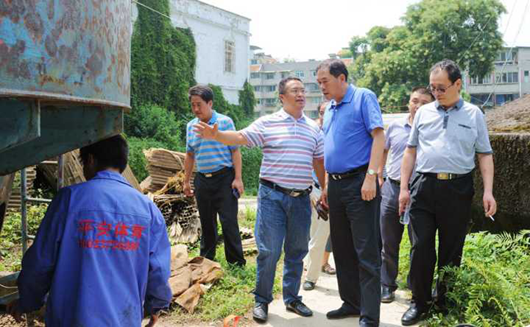随后,陈坚书记一行又马不停蹄的来到南校区自备水厂维修现场,查看水厂净水系统石英砂更换和相关设施维护等施工情况,并与施工方的负责同志探讨如何最大限度保障校内水厂的生产工艺和流程,并对施工期间如何保障师生员工的用水进行了询问。当听到“为保障师生日常用水,施工期间采取分步实施的办法,虽然时间可能要长一些,但能够保证基本不停水”时,陈坚书记欣慰地说:“这种做法很好,一切从师生的实际需求出发。”