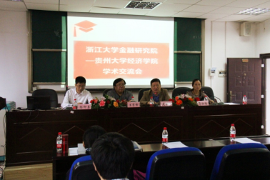 经济学院院长王秀峰教授作了热情洋溢的欢迎致辞,介绍了贵州大学经济学院的办学与科研现状,表达了对浙江大学金融研究院“教授团”一行的热烈欢迎和感谢。浙江大学金融研究院院长、文科资深教授史晋川先生发表讲话,回顾了贵州大学与浙江大学长期来建立的深厚的学术交流友谊,并祝愿这次学术交流会成功举行。