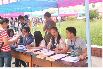本院迎新接待点设在中山园食堂,早在迎新工作开始前一天,我院新生接待点早已标明“历史与民族文化学院”几个醒目大字,方便新生们快速找到学院报到地点。上午7时起,陆续有新生进校报到,迎新工作正式拉开帷幕。学院迎新志愿者们热情地帮助新生办理入学手续,井然有序地引领新生们完成报到程序。志愿者们分工明确,热诚服务。无论是审核新生录取通知书等重要材料,或是向新生认真讲解需要提交的材料,或是帮助每一位到来的新生安排寝室入住并发放钥匙,亦或是主动从家长和新生手里接过行李并带领他们到安排好的宿舍,即便是指引新生具体办理一卡通和领取军训服的地点等诸多细节,志愿者们都以百倍的热情与专注耐心对待。