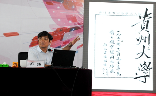 “贵州大学根深叶茂,是有深厚基础的大学。”郑强以《区域性地方高校建设高水平大学的思考与举措——以贵州大学为例》的报告开篇,介绍贵大百年渊源。