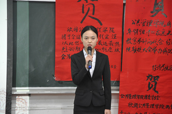 贵大新闻网讯(公共管理学院 杨贵园 摄影报道)9月9日晚,我校公共管理学院在逸夫楼114D教室召开第一届第四次团员代表大会暨学生代表大会。