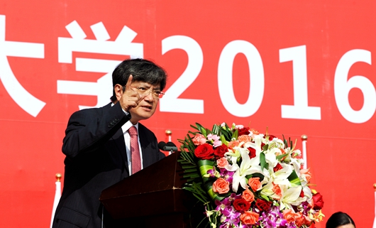 校领导陈坚、郑强、王红蕾、杨伟民、骆长江、金道超、汪海波、向淑文出席。校长助理、副教务长、学科专家代表、校直相关部门主要负责人、各学院党政主要负责人和分管学生工作的副书记、学生辅导员、学生家长代表、2016级全体新生参加典礼。校党委副书记杨未主持典礼。