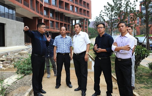 陈坚一行查看了新校区二期办公楼、教学楼、学生公寓、校园景观绿化等建设情况,重点检查了圆形报告厅周边建设情况。就新校区建设过程中存在的建筑垃圾清理、垃圾箱摆放、校园景观绿化、阅湖建设、候车区建设等问题提出了具体整改意见,要求有关部门限期整改完善。