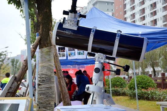 贵大新闻网讯(记者团 严纯 实习记者 王佳文 郑婷 报道|摄影 高富)为丰富校园文化生活,为爱好天文的同学提供一个展示自我的平台,10月16日,贵州大学天文协会(以下简称贵大天协)招新活动在西校区16栋宿舍楼前举行。