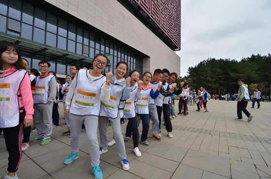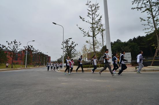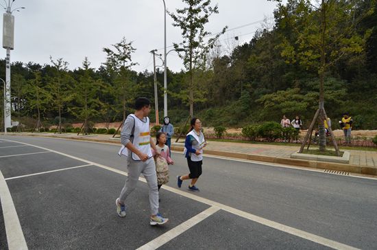 另一个游戏则是“寻宝”,在临近终点时,在东校区篮球场对面的小花园中放置各种零食,文具等小礼品。当参赛者到达这里时,有专门的志愿者负责指引,让参赛者在这一疲惫的过程中暂缓,在小花丛中寻找着各种零食,充满乐趣。“感觉好累呀,原以为好简单,结果好远,但是很开心。既做了公益又参观了新区,同时还磨练自己的意志。”财政学16级研究生罗竹杰说。